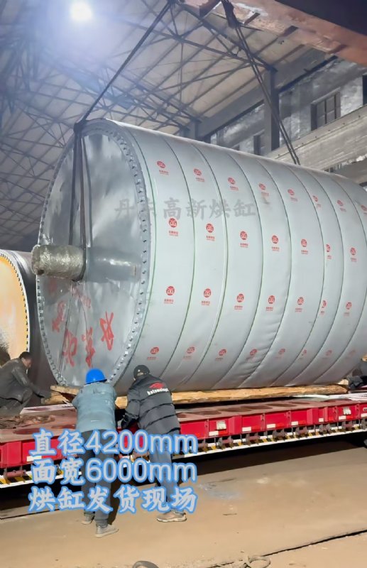 | 國(guó)內(nèi)最大的4200mm直徑,6000mm面寬烘缸發(fā)貨現(xiàn)場(chǎng) |